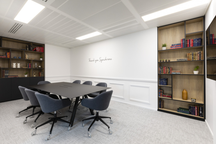The new layout reflects the dynamism of Synchrone and its desire to recruit young talents. Elegance and sobriety are essential. Located on the 5th floor of the building belonging to Tishman Speyer, the space is divided into two separate spaces.