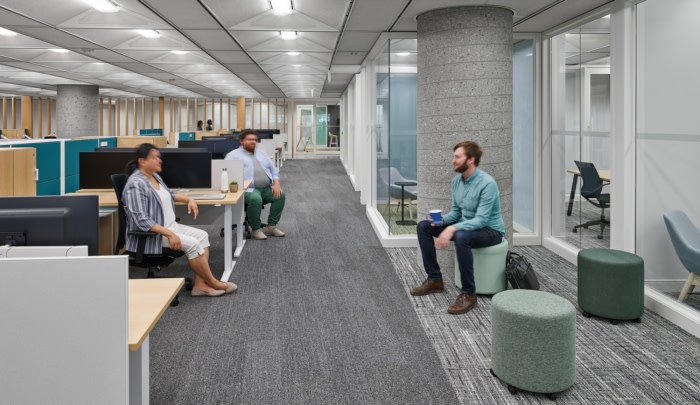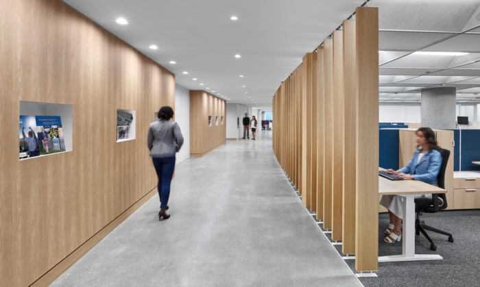 The team chose an activity-based office to promote movement and support the workforce for their variety of tasks suited for individual needs. The office is split into differing sections, or “neighbourhoods”, made up of flexible workstations and provide a nice alternative to private rooms and offices. Defined pathways act as “sidewalks”, which connect the neighborhoods together, all while supporting a natural flow to the way people move throughout the space.