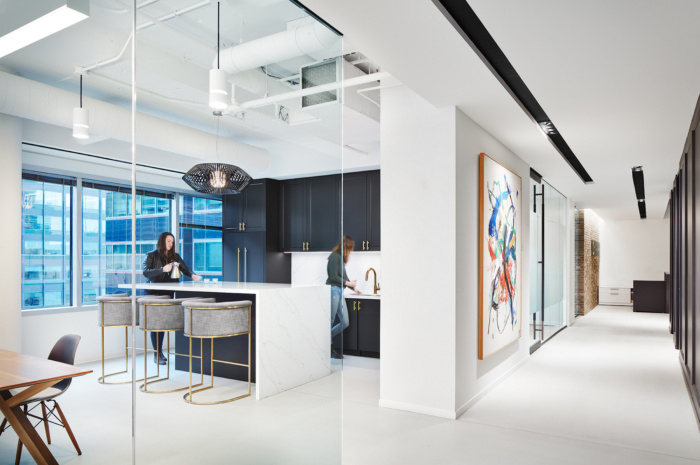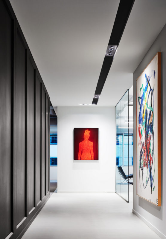 Driven by Chairman Jerry Speyer’s passion for contemporary art and philanthropic work with cultural institutions, the global real estate firm has earned a reputation for featuring art prominently in building lobbies and other public venues. With this in mind, we created a loft-inspired workplace that prioritized light and space for artwork, and scaled back on using a more traditional branding vocabulary. Linear details in the reception area and lighting reference to the company’s logo, and bold pieces sourced from the collection were chosen in response to our neutral, clean finishes.