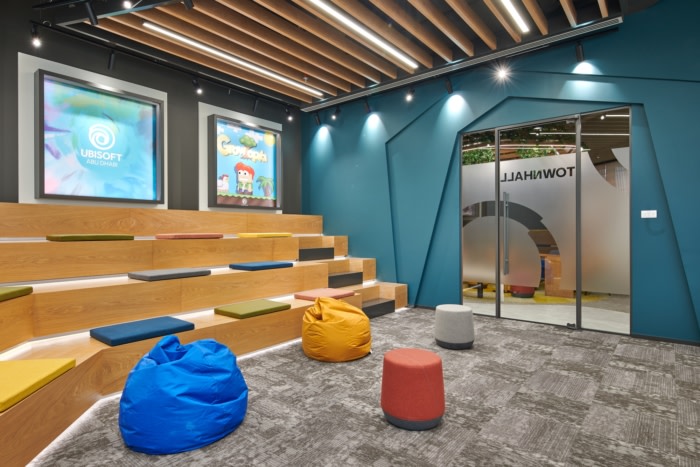 Bright, flexible and welcoming environment define the office interiors of the new Ubisoft Office in AUH. The spaces of the office are designed for the people who are go-getters, bold and future thinkers. When the brief was presented, we are tasked to create a space that would encourage the users to move. Spaces should be highly collaborative, areas wherein they could also be encouraged to think deep and introduction of some rest areas wherein they could just take respite during a long and productive day. Ubisoft is a constantly evolving technology company that is heavily dealing with the further development of online games. It is also imperative to design their office that would measure up with the changing times.
