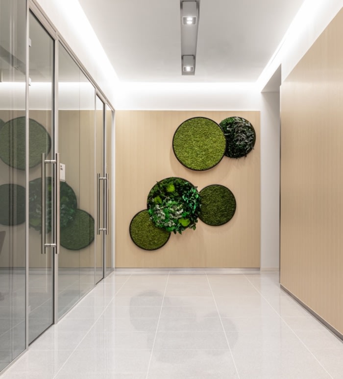 The finish palette consists of light wood tones, a balance of warm to light neutrals, and pops of greenery. The overall bright and airy atmosphere create a natural, modern, and sophisticated environment to create a timeless, lasting interior fit out that will not trend out. With sustainability at the forefront, all materials are PVC free.