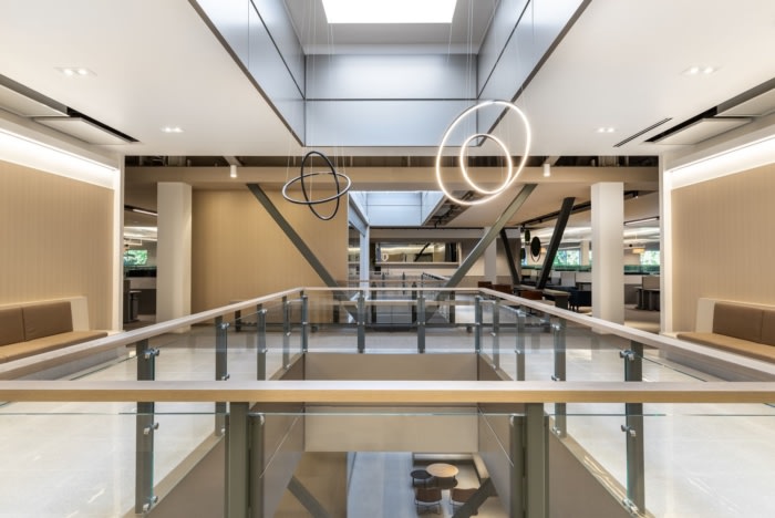 The two-story, Class ‘A’ space was originally constructed in the 1980s and needed creative solutions to address the lack of natural light and limited flexibility between areas.