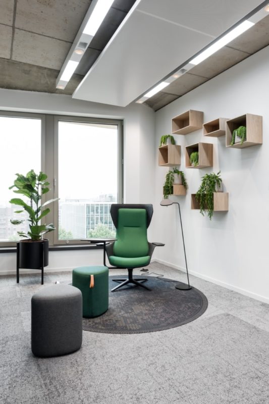 Sustainability is also of great importance in the office – not only in efficient space usage but also in choice of materials, the concept of biophilic design and the operation of the building. Focus on plant-based options in the internal café, reducing waste as well as the multiplied subsidy for public transport for all employees are initiatives to decrease the carbon footprint of the workforce significantly.
