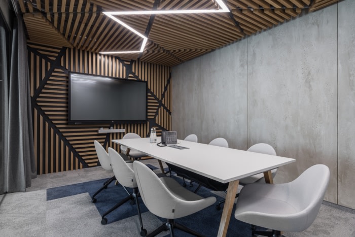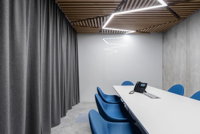 Designers from Bitcreative studio applied the newest AV system and rooms reservation. Conference rooms are also equipped with the liquid crystal film on the glass walls and automatically controlled curtains.