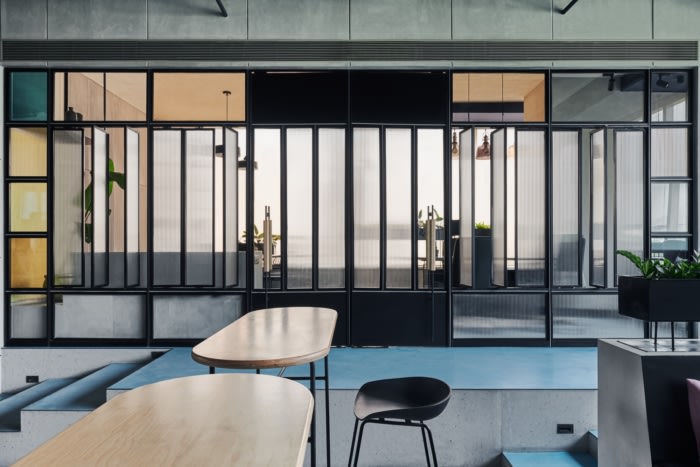 The office has been designed for the COVID and post-COVID work setting. The tables and pedestal storage are designed to be modular, such that, the office can be expanded in the future but also work for social distancing in our current times. Split across levels, the office space has been designed to encourage transparency and open discussions, both formal and informal.
