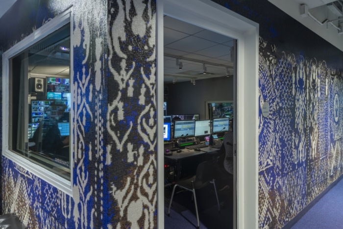 An increase in edit rooms was possible by reusing existing offices and enclosing ancillary spaces, bringing the total to twelve. The edit rooms received new fabric wrapped acoustic panels, along with new broadcast consoles & monitors.