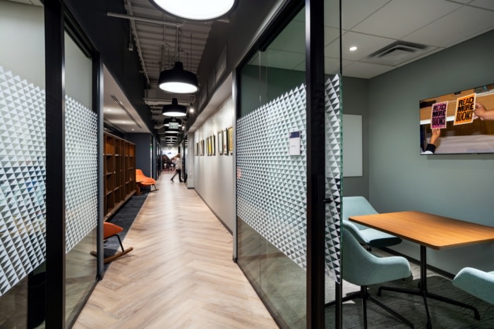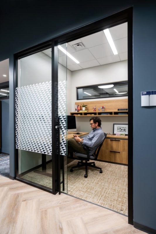 Finding balance between public and private zones was critical when bringing their workforce under one roof for the first time. By removing the typical meeting space from the individual offices, precious square footage was given back to the amenity