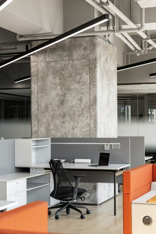 So we arranged coffee, social interaction, brainstorming, standing window-height bars, telephone booths, “magic boxes” and other third space points in every corner of the office. It satisfies the four dynamic office modes of employees which is sitting, standing, lying and walking, while also providing sufficient places to encourage communication and exchange between teams.