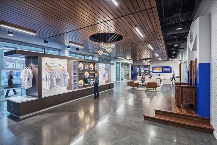 With flexibility, longevity and holistic experience at the forefront of the design, the new White Castle Home Office is redefining corporate office space in the modern world. The dynamic and inviting floor plan removes communication barriers through integration of an open seating concept. Elimination of the walled-off, passé office structure serves as a catalyst for better collaboration through design. Walking into the front lobby space, visitors experience the ultimate Craver culture with bold experiential elements nodding to the rich White Castle history and brand.