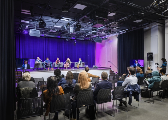 Below grade offers the most considerable ceiling heights and is home to two TV studios, video and audio control rooms, master control, and edit suites. Talk radio, performance and production studios, and the newsroom find their home on the second floor. The third and fourth floors offer edit suites, workspaces, meeting areas, podcast recording areas, and a media learning lab accessible to community members.