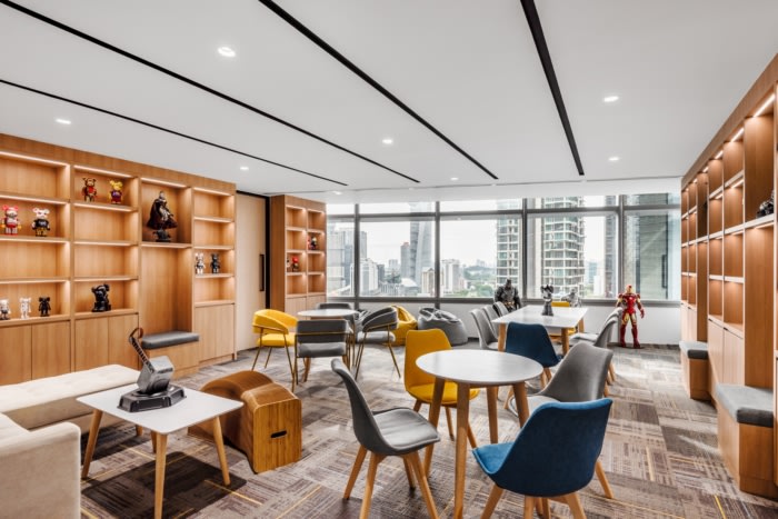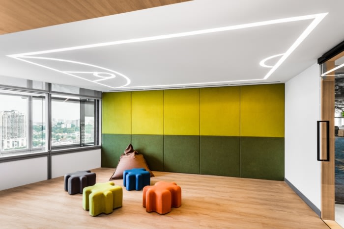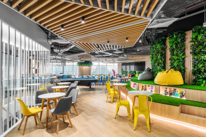 We also incorporated a library, gym/dance room, game room equipped with a karaoke system, a music room, sleeping pods for power naps, a minibar with beer tap, kids room and nursing room for parents who plan to bring their children into work, and a training room alongside other miscellaneous spaces. We wanted everyone to feel the calm ambience of a natural environment so we included plants in as many locations as possible. At the start of this project, we also aimed to curate a space that is able to obtain a GBI (Green Building Index) and LEED (Leadership in Energy and Environmental Design) gold certification which we eventually succeeded in.