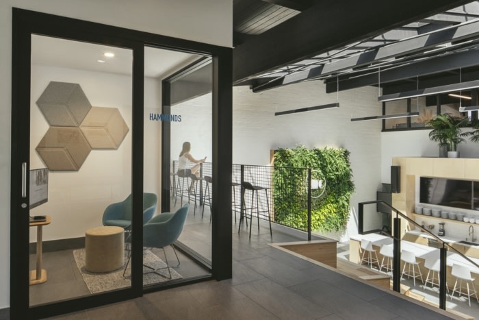 The building’s basement was designed exclusively for staff and includes open-plan office space, small meeting spaces for teleconferencing and a show kitchen with a dual display system for team gatherings and presentations. This level also features a patio area for dining, games and relaxation.